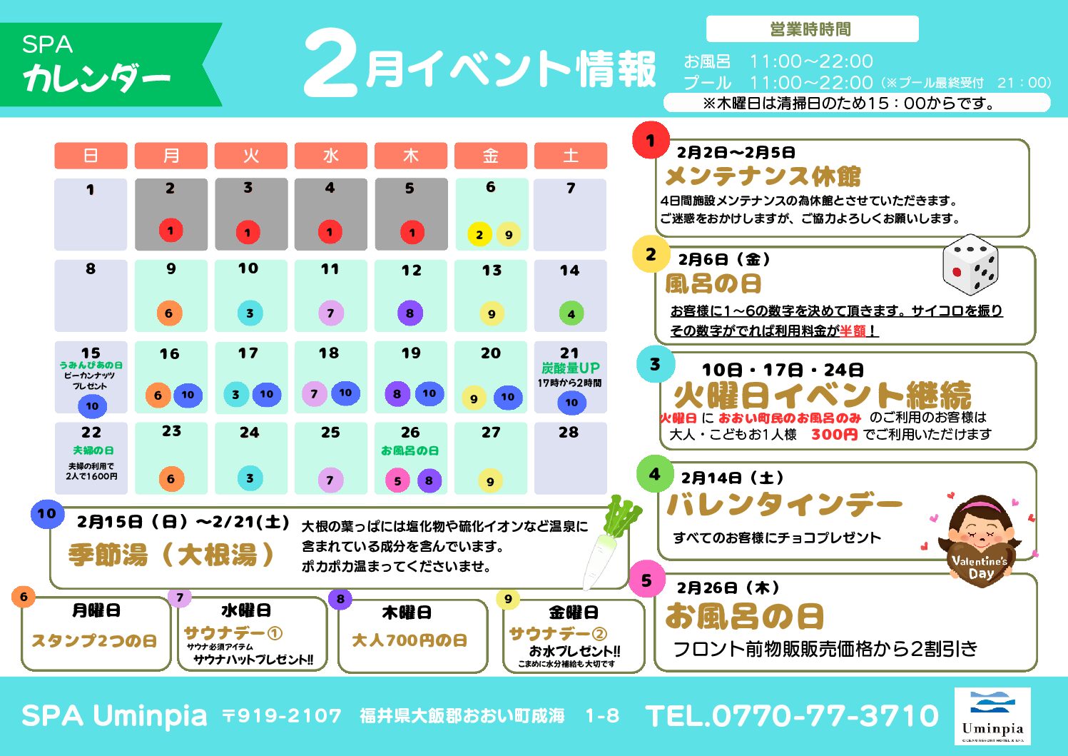 2月のSPAうみんぴあイベントカレンダー